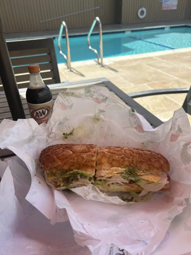 Today’s a great day, just like yesterday and the day before and every other day. I’m off the screens when I should be, enjoying a quick lunch outside (only eating half of this monster). That little reset recharges me.