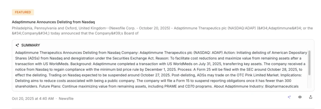 $ADAP just announced the other day they will be getting delisted from Nasdaq to the OTC market on the 27th (final day of trading on Nasdaq).