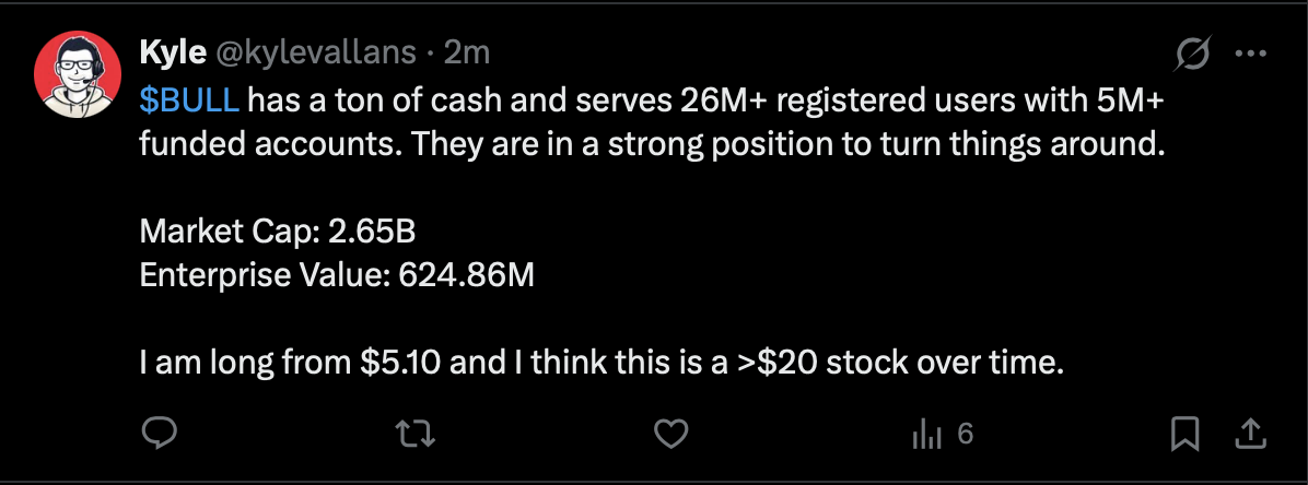 All of this is to say: I’m long $BULL at $5.10.