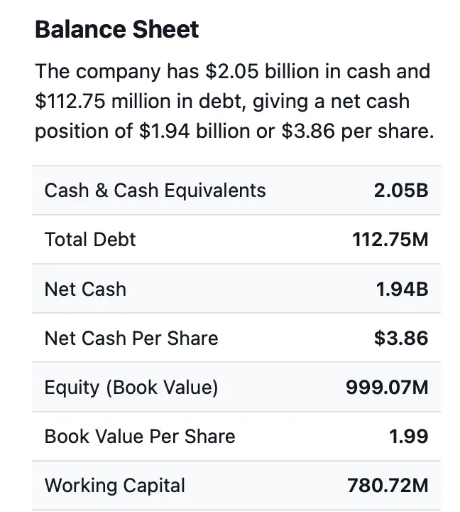 2. They have a ton of cash. Webull has over $2 billion in cash with very little debt, which gives them flexibility to buy back stock, issue a special dividend, or reinvest that capital to continue growing.