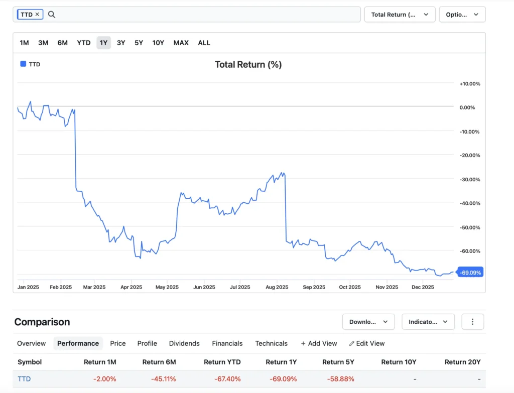So, why the heck am I long $TTD all of a sudden, considering the stock is down 45% over the last 6 months, 67% year to date, and over 69% over the last 52 weeks?